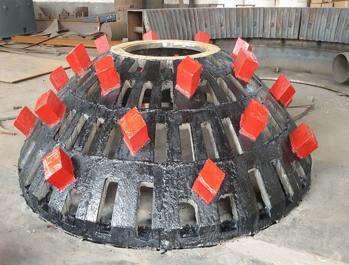 二.采用雙曲面盤塔體形成多級破碎裝置, 采用改進型篦式出料裝置,增強破碎能力,加快卸料速度,使窯內底火平穩(wěn)不拉深,落料平衡,燒結料出料粒度均勻。